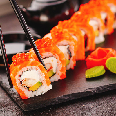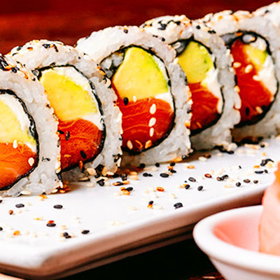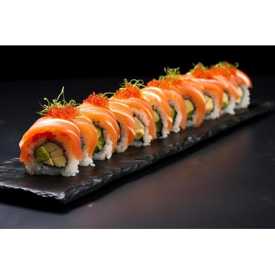8 piezas (Salmón ahumado aguacate , queso philadelphia, sesamo y tobiko)