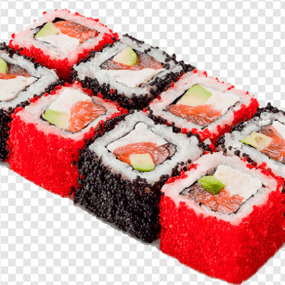 8 piezas (Salmón ahumado aguacate , queso philadelphia y tobiko)